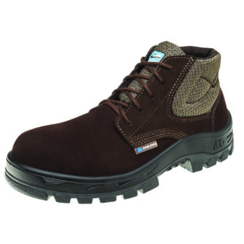 Bota de segurança confeccionada em couro nubuck café, indicada para